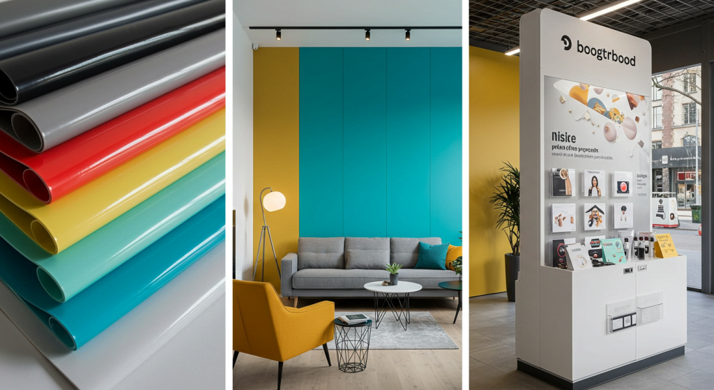 Mağaza içi standlar, vitrin dekorları ve marka tabelaları, renkli PVC levhalar sayesinde hem dikkat çekici hem de uzun ömürlü olur.